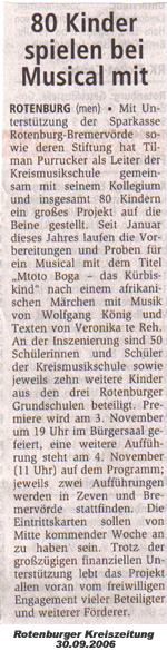Berichte: Zevener Zeitung [01.11.2006] Bremervörder Zeitung [15.10.2006] Rotenburger Kreiszeitung [11.10.2006] Rotenburger Kreiszeitung [04.10.2006] Rotenburger Rundschau [04.10.2006] Zevener Zeitung [03.10.2006] Rotenburger Kreiszeitung [30.09.2006] Zevener Zeitung [30.09.2006] Rotenburger Rundschau [23.06.2006]